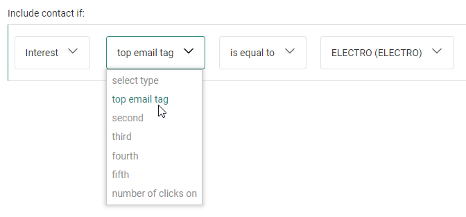 A filter based on the top email tag equal to ELECTRO.![]()