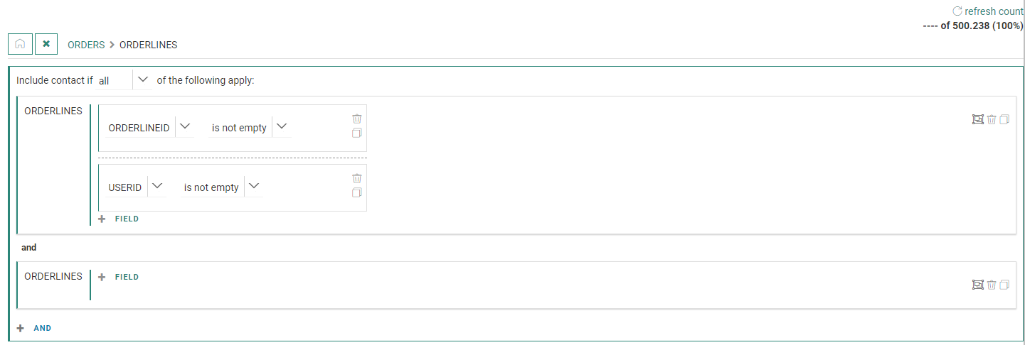 - The total target count is shown and can be recalculated on each level when using nested 1:N data.
