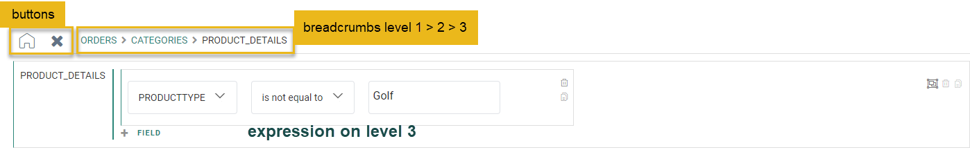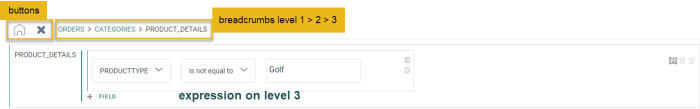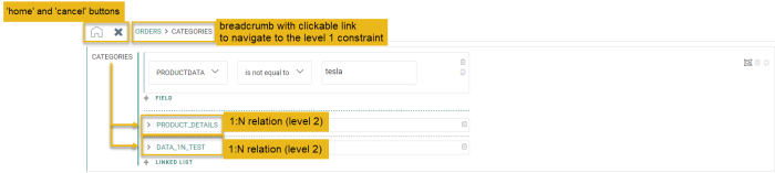 Clicking the category link inside the second constraint shows a level two constraint, that also shows a count for its filter set.![]()