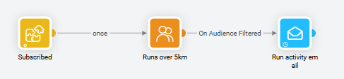 In the above example, when contacts have run a distance over 5 kilometers (= Custom Event data coming from the Audience List), they receive a run activity email.