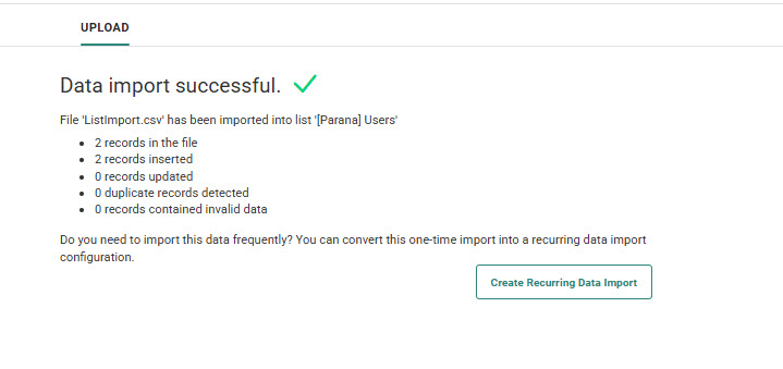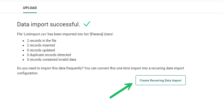 When the import has finished, you can choose to create the import configuration as a recurring Data Import.