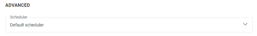 Note: The Scheduler section is only visible if there are schedulers configured on your environment. By default, there is 1 scheduler in which case this section is not shown as this default scheduler is used. If there is more than 1 scheduler configured, you will have access to the Scheduler section.