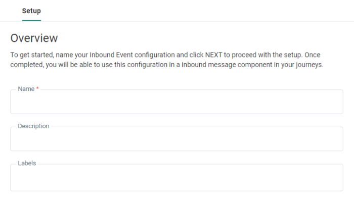 1. Give a name and description. Ensure they reflect the use of the event as it will be used to display the event in the journey.