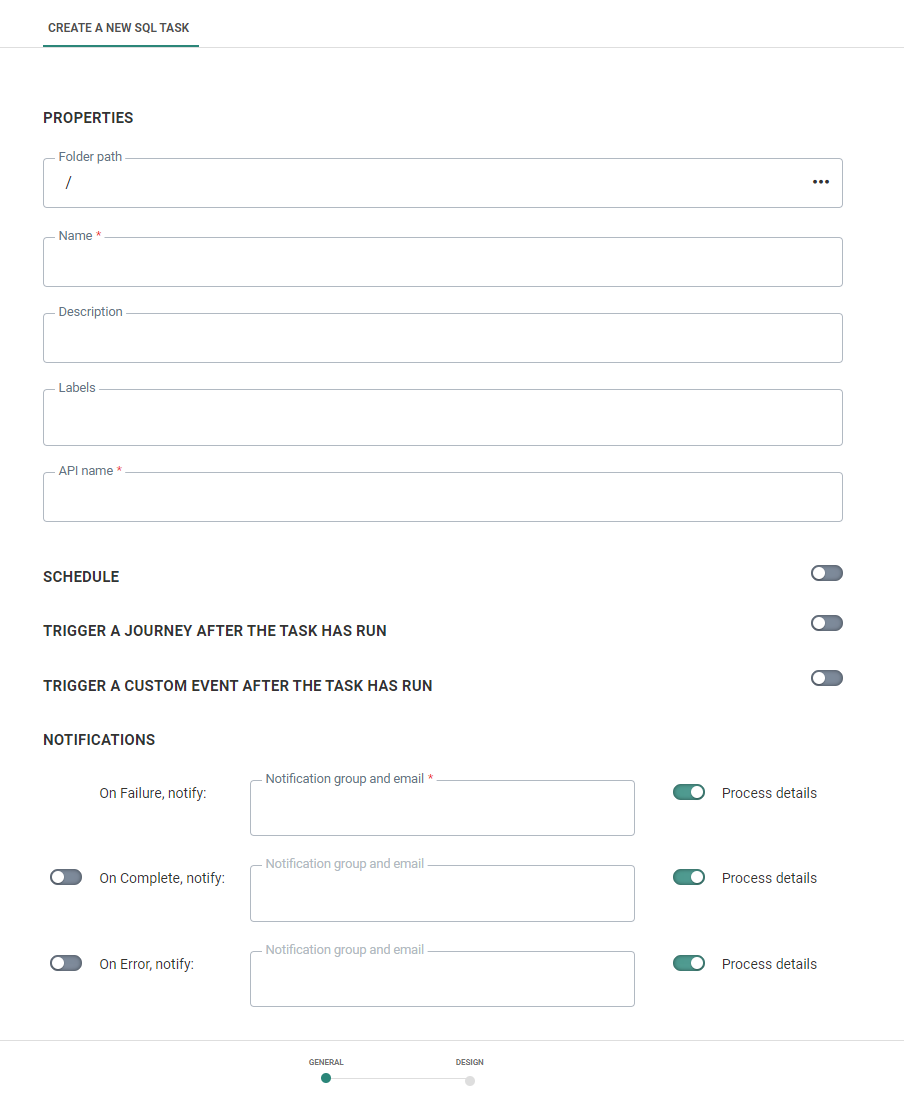 1. Set the general properties of the task