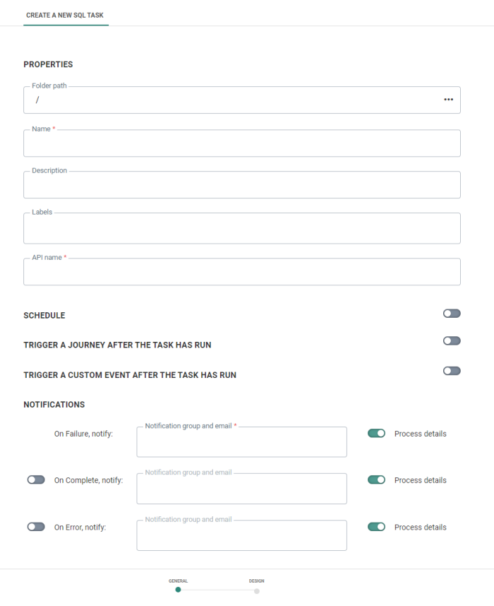 Note: Notification emails for when the task fails is mandatory. The other notifications are optional.