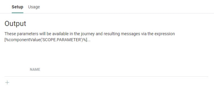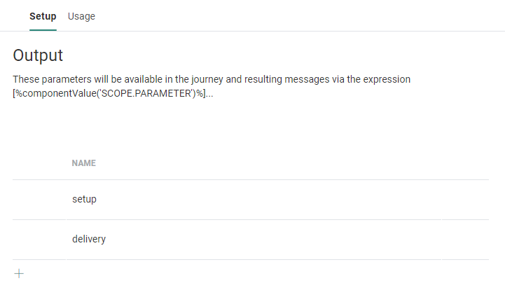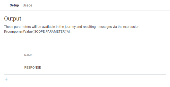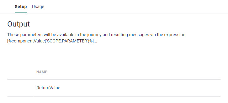 Click Next. The following step returns a list of output parameters (which can be used in the journey using the following expression: [%componentValue('Variable')%]).