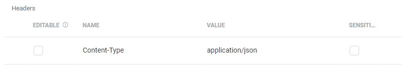 Also, in the Headers grid above, 'Content-Type: application/json' is automatically added as a read-only field.