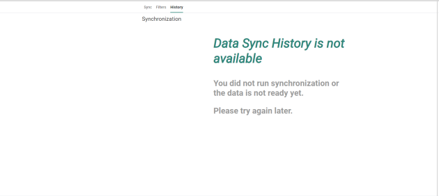 This step contains three tabs: Sync, Filters and History.