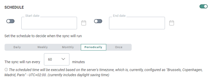 Periodicity — Indicate when the sync should run: