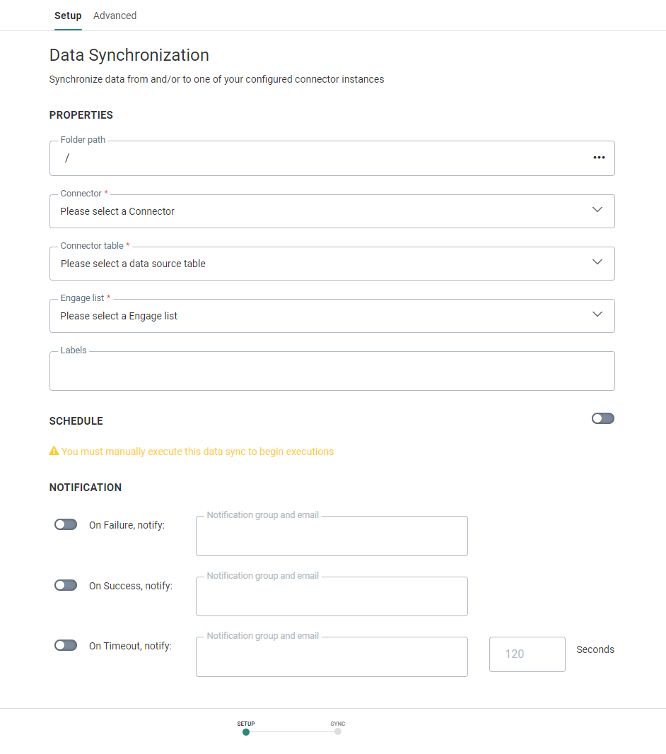 On the Setup tab, you can define all the settings for the Data Sync.