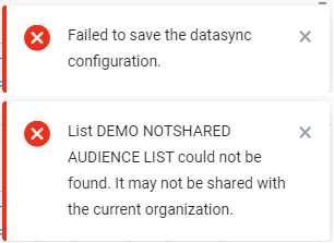 • Note: When using an Selligent list that has linked lists that are not shared with the current Business unit, you will not be able to use fields from these linked lists in the data sync. The user is informed when trying to select such a list in the data sync configuration.