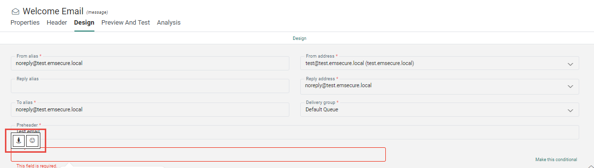 - From Text component in the message, the text of a button, etc: access the WYSIWYG editor and click the emoji icon.