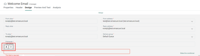 - the preheader of an email