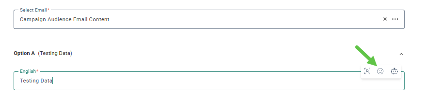 - From a form field (e.g., subject field in email header): click the field to display a popup menu with the emoji icon. Click the icon to launch the dialog