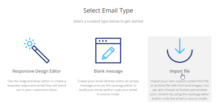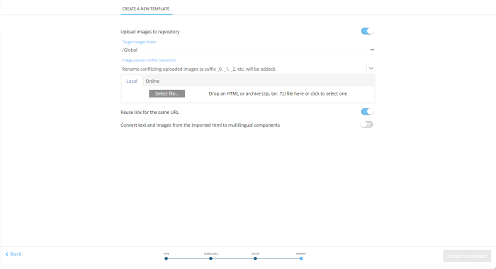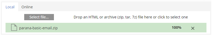 1. On the import step, you can select a local or online HTML or archive file to upload.