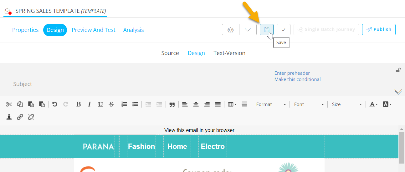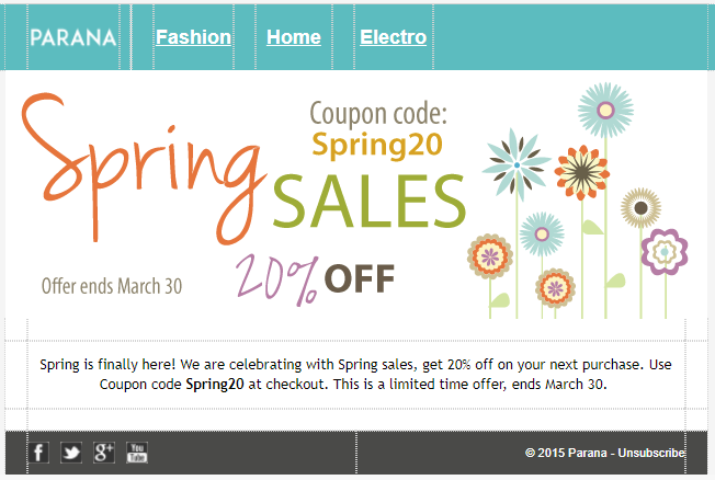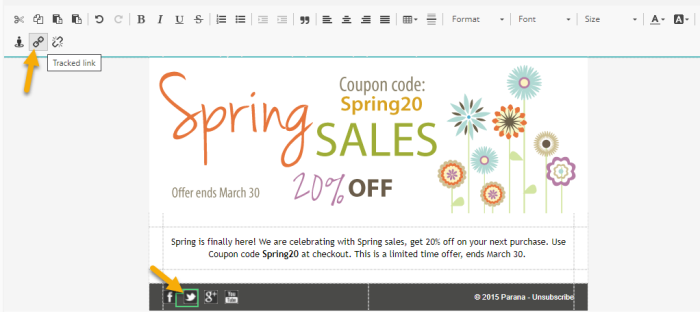 The image in the body of the email template should link to Link 101, which leads to the Parana Shop's home page.