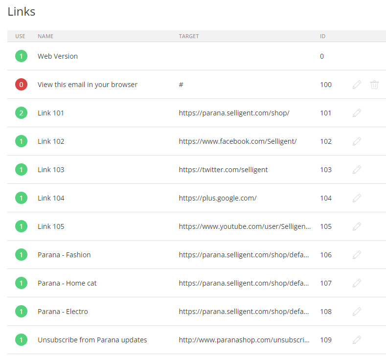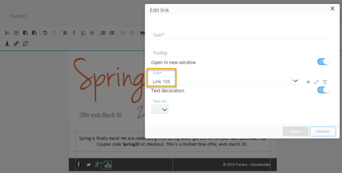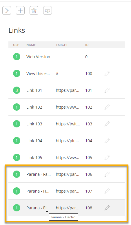 • Link 105 — Parana Youtube link; for the Youtube social icon in the footer of the email template.