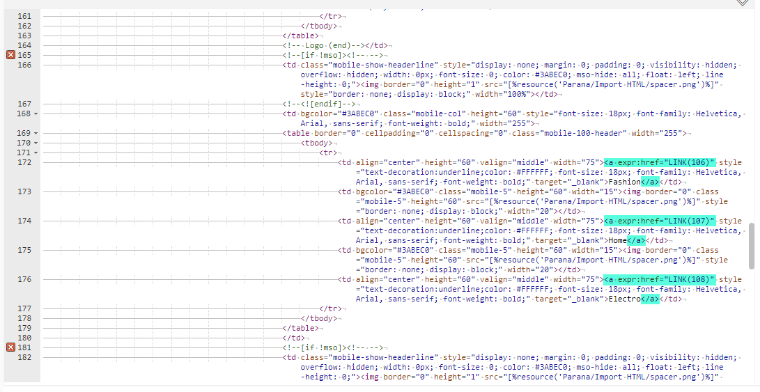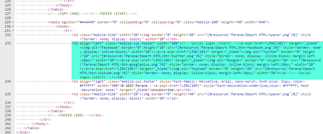• Link 104 — Parana Google Plus link; for the Google Plus social icon in the footer of the email template.
