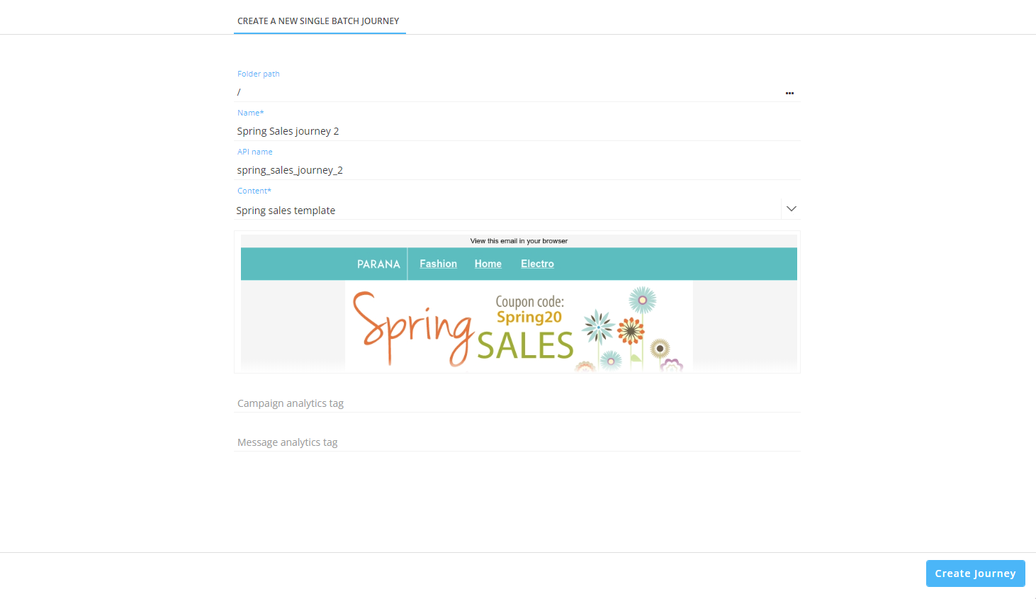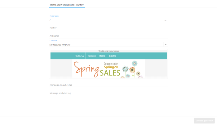 Enter a journey name; for example 'Spring Sales journey 2'.