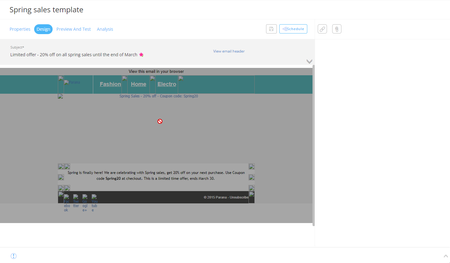 In order to do so, our final email needs to be saved, validated and published (if not validated, publishing it will also show any validation errors).