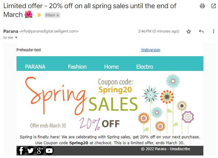 Let's send a testmail to our own email address to verify the actual email as it will be sent out to all contacts.