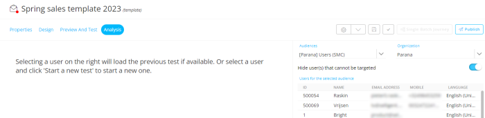 As we've only designed our template in English, it'll only work for test contacts with English as language (language code 'en-US' in our example).