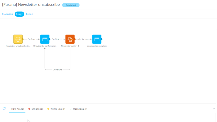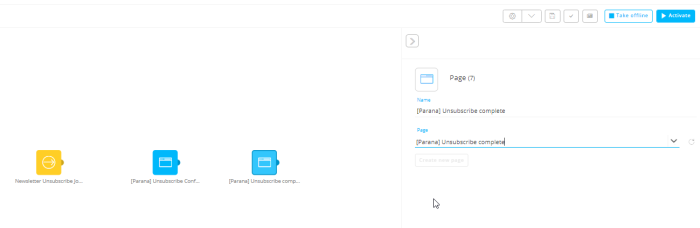 Congratulations, the basic unsubscribe journey is ready! Lets continue and adapt the unsubscribe link of the "Newsletter" email.