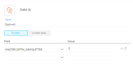 6. Click the Data Component to display the Properties. In the properties panel there are 2 tabs. Profile and Linked data. Profile refers to the Audience List. In this example, that is the list where the update will happen.