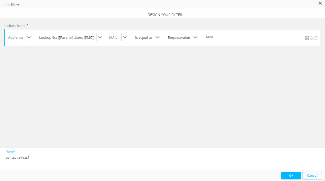 You are testing here if there is an email in the Audience List that corresponds to the email entered in the form. The function used for this is requestValue.