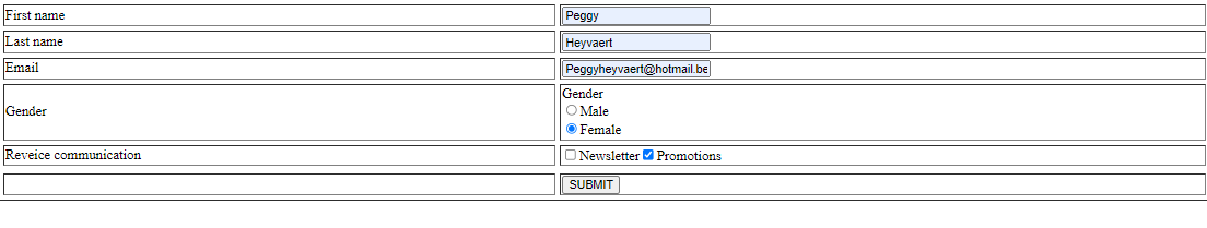 2. The form is displayed. Fill out every field and check the Promotions check box. Leave the Newsletter check box unchecked. When done, click the Submit button.