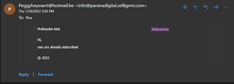 Note: If your record already exists, you will receive the following email and the subscription process stops.