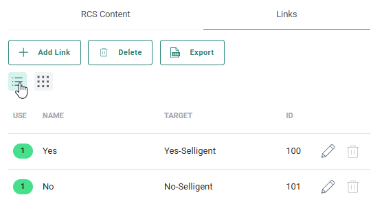 Once configured, these links will be shown on the Links tab and be available for use in the buttons: