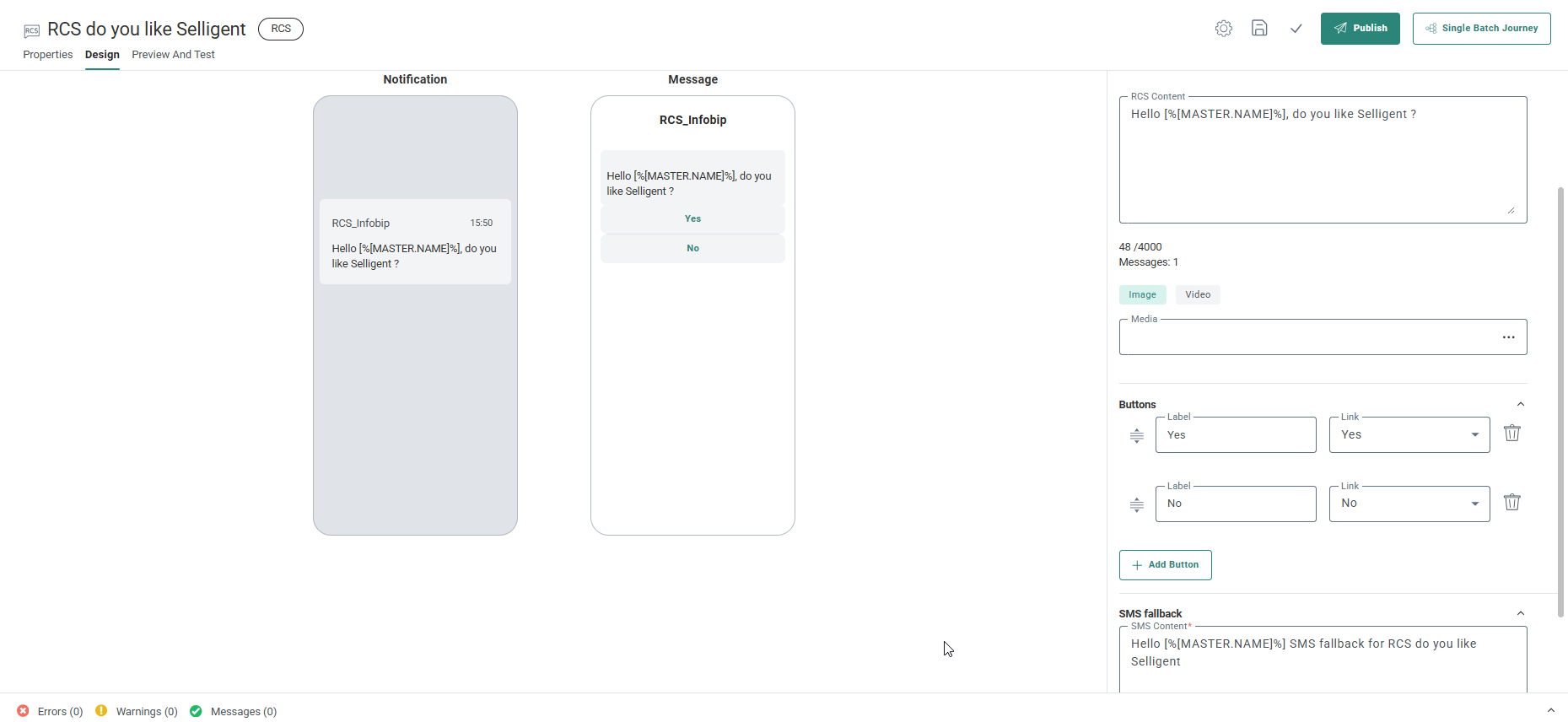 7. Name the message clearly (example): RCS_Do_you_like_Selligent