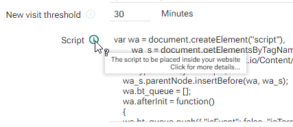 Site also shows some info regarding the script usage when clicking on the info icon, after showing the integration script in the Universe configuration.