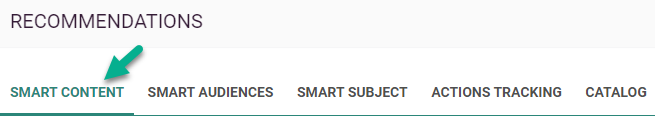 When the product catalog is configured, and the tracking script is added to your web pages, you can start setting up and using Smart Content recommendations in the Recommendations tool.