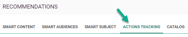 Actions Tracking — It's possible to track activity on your e-commerce website, such as cart additions, purchases made, favorite article additions and more. When a trigger is configured, the tracked action is stored in Recommendations when the event occurs. These tracked events are mainly used for analytics purposes and are configured through the Recommendations dashboard.