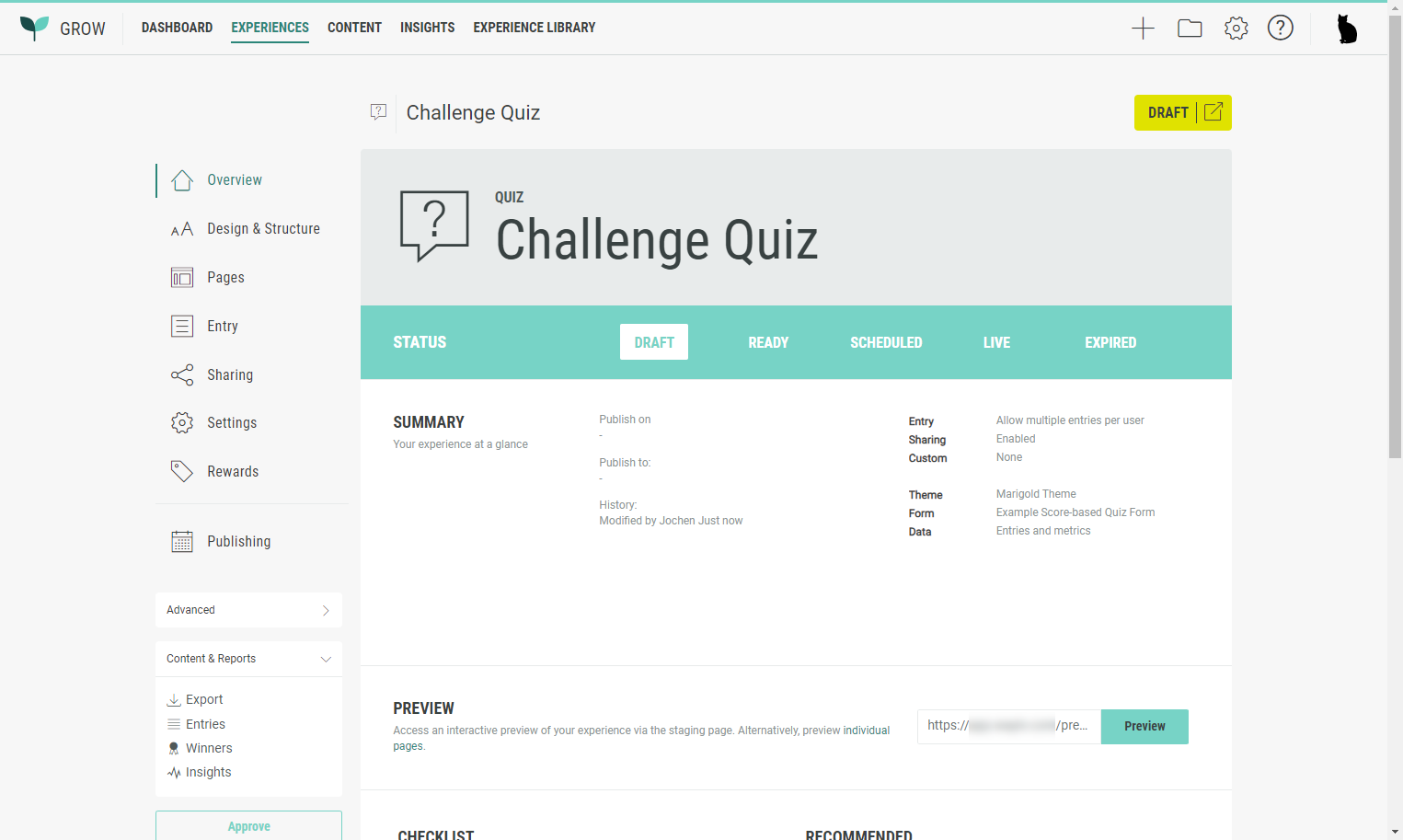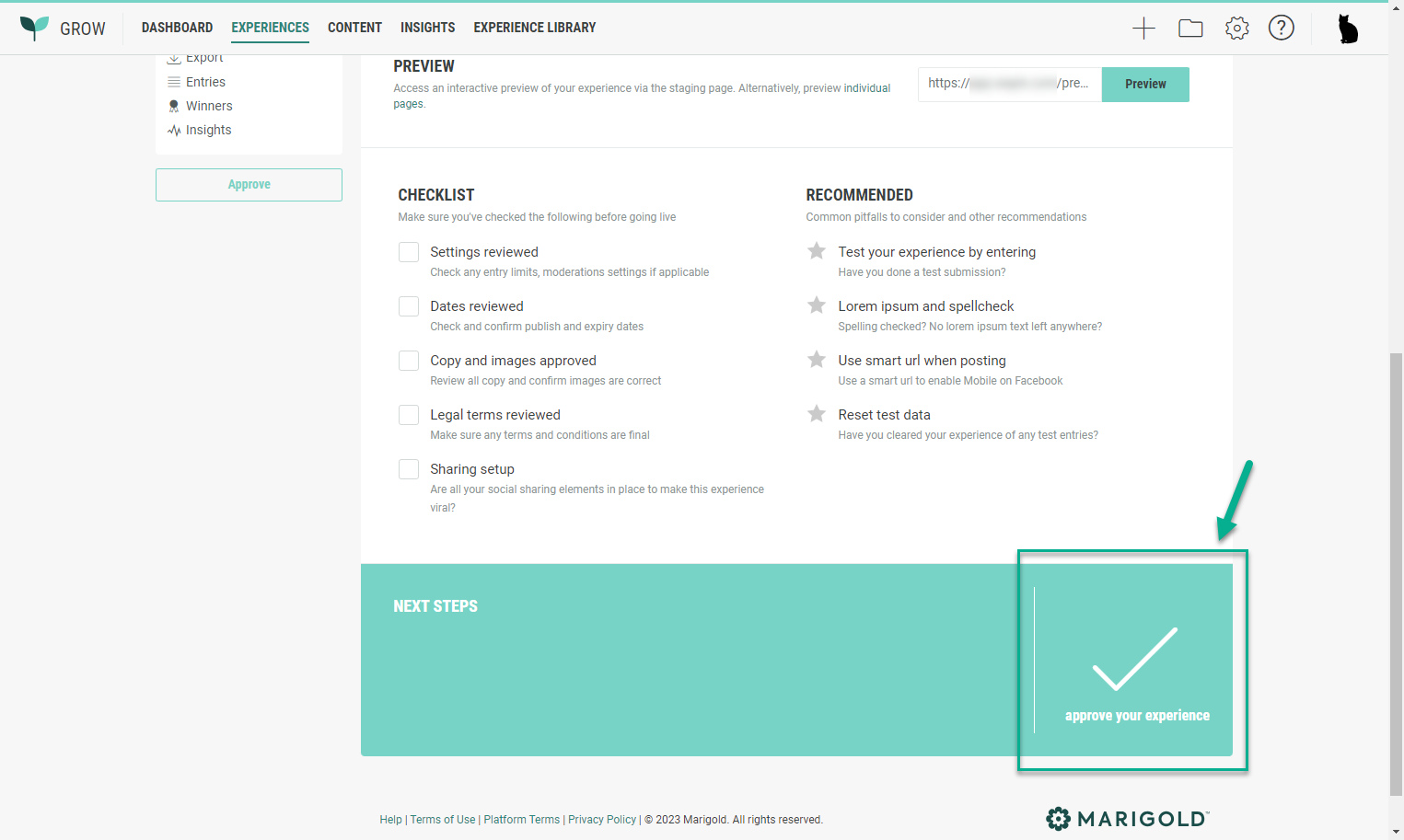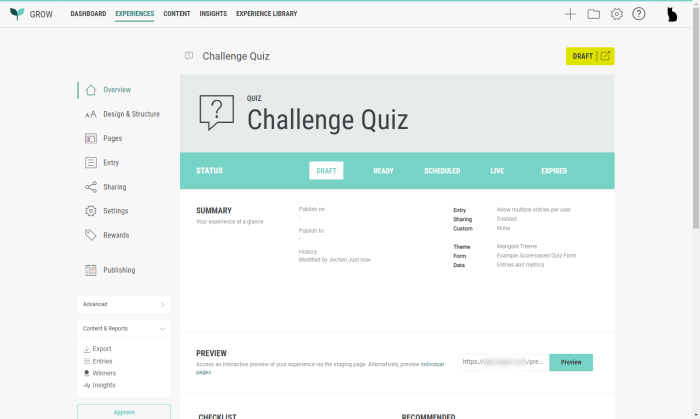 Once your Experience is created, you’ll be able to preview it and make any changes you wish to make. For example, you can edit or add pages, change the title and theme, and customize the header and footer.