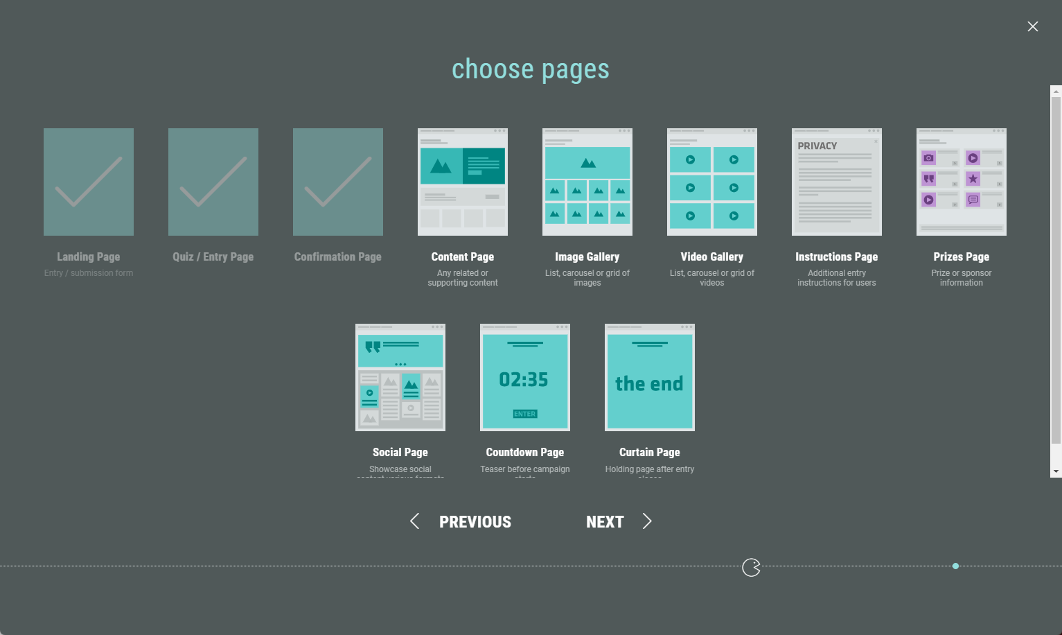 To create an Experience, a toolset is at hand, not only to allow you to start from a series of predefined templates, but also to allow modular sections to be added or removed from your own Experience.