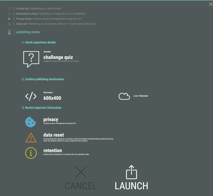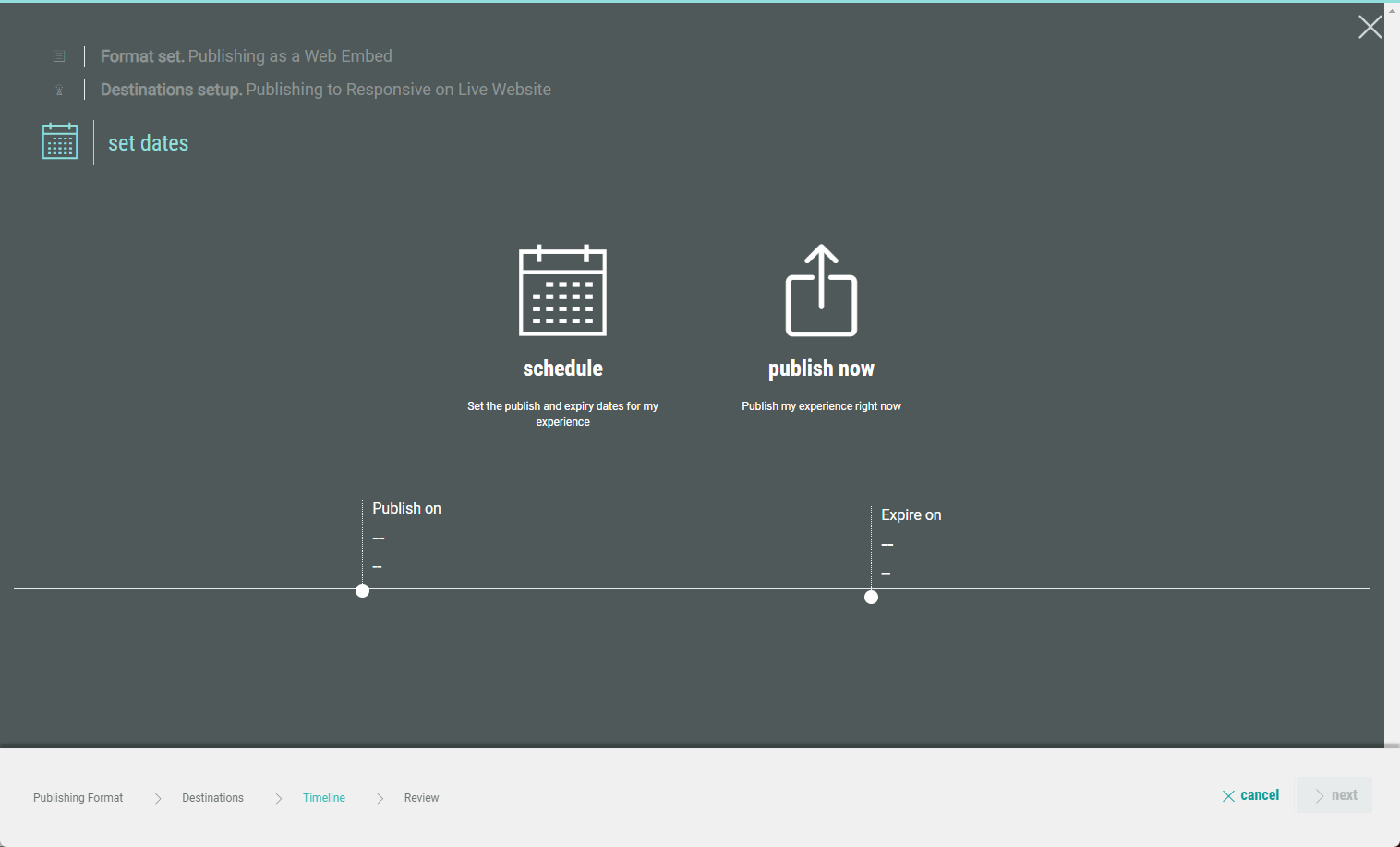 Set a schedule or publish the Experience immediately, and define when it expires.
