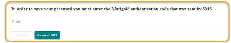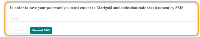 The user needs to enter their authentication code that was sent by SMS and click on the 'Validate' button. When this is successful, the password will be changed and the user is notified about the change.The user can retry to validate a code for a maximum of 3 times.