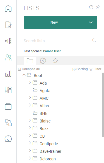 Lists — Accesses the Lists entry from where different list types can be created and managed
