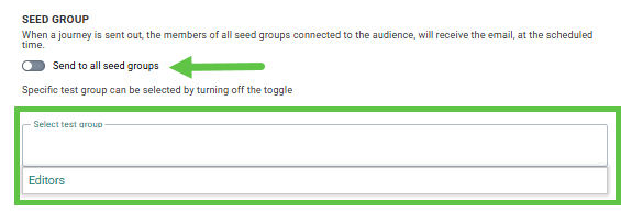 Toggle the option off if you do not want to send the message to any of the Seed groups, or, it you only want to send it to a select number of Seed groups. You can select the specific Seed groups from the field below.
