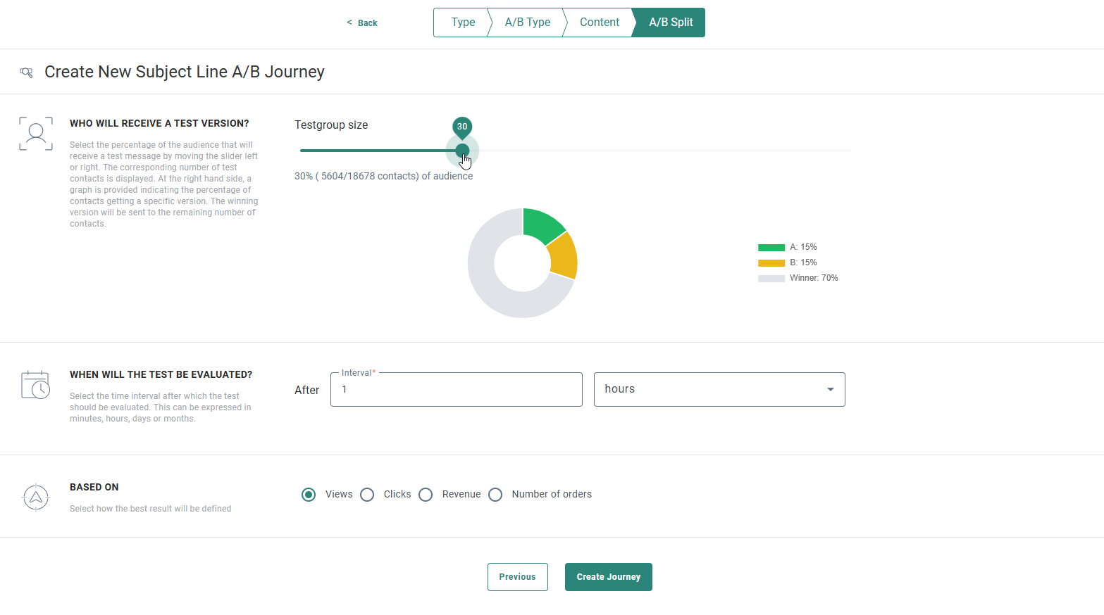 The same order is used in the options when setting up the Subject Line A/B Journey.