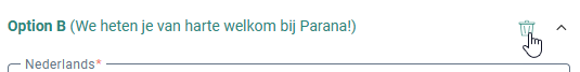 To remove a subject line option, hover over the option header and click the bin icon in the upper right corner.