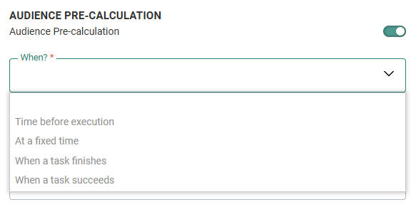 When? — Only displayed when the audience pre-calculation is activated. You can choose from the following options: