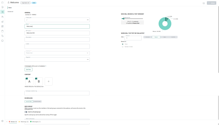 Single Batch A/B Journeys can be launched immediately or scheduled at a given date and time.