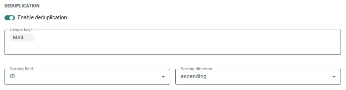 - Sorting direction — Choose from ascending or descending to define the record that should be kept.