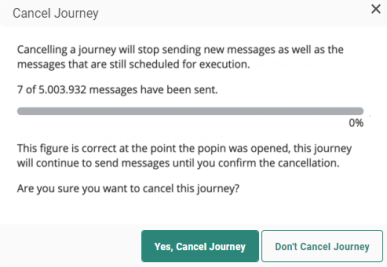 - Some messages have been processed already: A progress bar gives a very clear and visual representation of what has been processed. You can choose to cancel or keep the journey running.