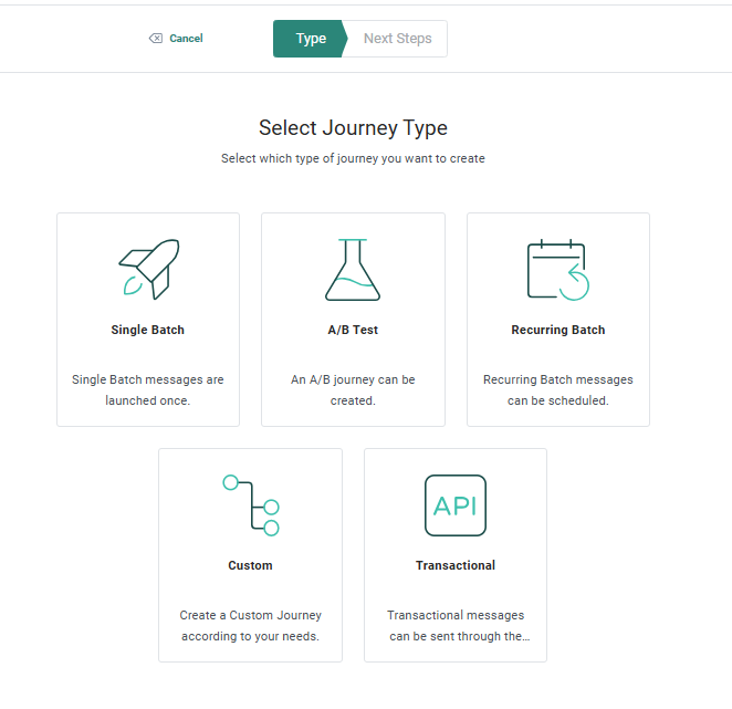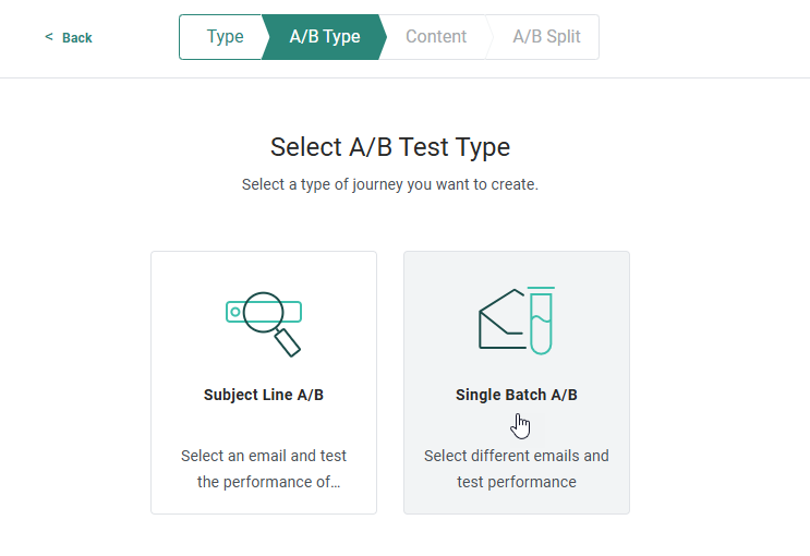 Note: Single Batch A/B Journeys can be created for email messages and mobile push notifications. They cannot be tested simultaneously.