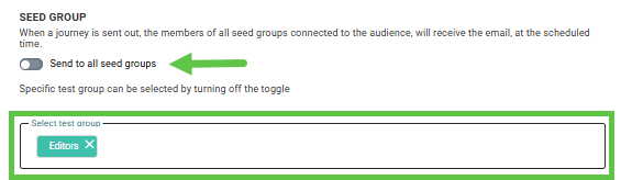 Toggle the option off if you do not want to send the message to any of the Seed groups, or, it you only want to send it to a select number of Seed groups. You can select the specific Seed groups from the field below.